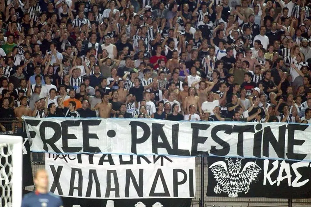 Συνθήματα ακούστηκαν σε όλο το γήπεδο με τους φιλάθλους να φωνάζουν «Με την Παλαιστίνη έως τη...