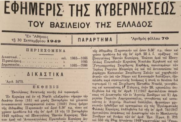 Πέντε αγωνιστές, όπως βεβαιώνουν και σχετικές «Εκθέσεις εκτέλεσης θανατικής ποινής» που σώζονται σε δικαστικά αρχεία και σε αρχεία του Δήμου Κεντρικής Κέρκυρας και οι οποίες καταχωρήθηκαν σε Φύλλα της Εφημερίδας της Κυβερνήσεως (ΦΕΚ), εκτελέστηκαν στη νησίδα στις 8 Σεπτέμβρη 1949, ημέρα Πέμπτη και ώρα 6:30 το πρωί.