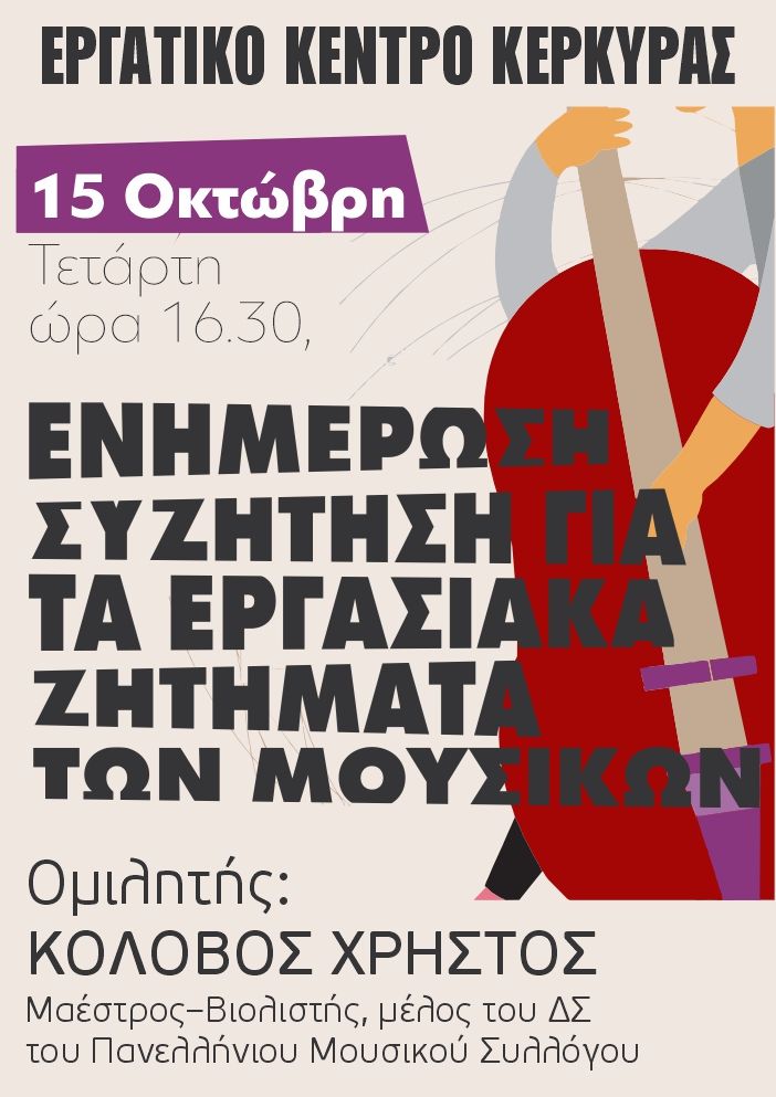 Ενημέρωση - Συζήτηση για τα εργασιακά θάματα των μουσικών στο Εργατικό Κέντρο Κέρκυρας