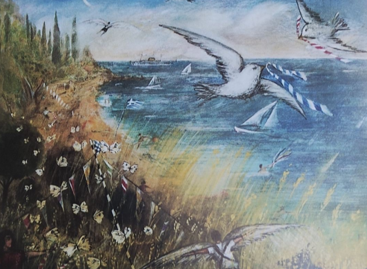Ένα το είδατε στην κορυφή αυτού του θέματος. Πρόκειται για έργο του Σπύρου Κουρσάρη (βινυλικό σε χαρτόνι, 50 Χ 70 εκ.). Ο τίτλος του είναι στίχος από το περίφημο ποίημα «Το σκάκι», το τραγουδισμένο από τον Επτανήσιο ερμηνευτή Γεράσιμο Ανδρεάτο; «... δεν έχει τέλος η παρτίδα»!