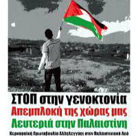 Νίκη στην Παλαιστινιακή Αντίσταση. Λευτεριά στην Παλαιστίνη. Ήττα του Σιωνισμού και των συνεργατών του. Απεμπλοκή της χώρας μας από τα γρανάζια του πολέμου. ΟΧΙ στον άξονα Ελλάδας-Κύπρου- Ισραήλ.
