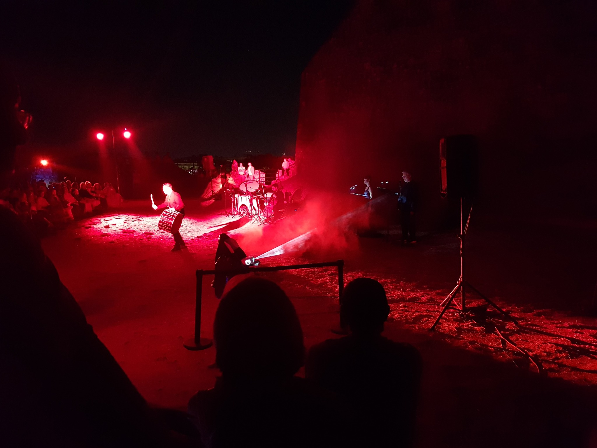 Η εκδήλωση της Δευτέρας ξεκίνησε ακριβώς στις 9, γεγονός που δείχνει ότι οι συντελεστές σεβάστηκαν τους πολυάριθμους θεατές που είχαν προσέλθει έγκαιρα στον χώρο. Εξελίχθηκε σε τρία επίπεδα: εικαστικό, μουσικό και – βεβαίως – ιστορικό. Τα δύο πρώτα ήταν εντυπωσιακά και απόλυτα προσαρμοσμένα τόσο στον χώρο όσο και στο θέμα, χάρη σε μια εξαιρετική σκηνοθεσία.