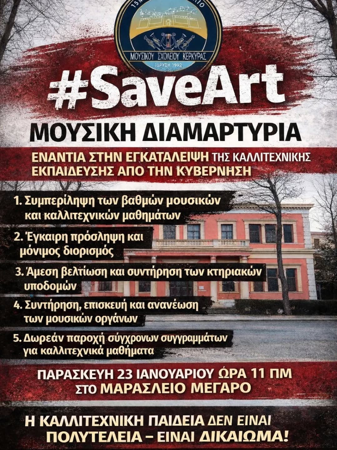 Την κινητοποίηση των Μουσικών Σχολείων σε πανελλαδικό επίπεδο, που θα πραγματοποιηθεί...