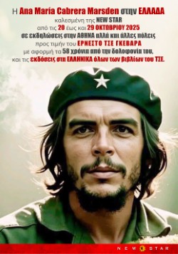σε εκδηλώσεις στην ΑΘΗΝΑ αλλά και άλλες πόλεις, προς τιμήν του ΕΡΝΕΣΤΟ ΤΣΕ ΓΚΕΒΑΡΑ με αφορμή τα 58 χρόνια από την δολοφονία του και τις εκδόσεις στα ΕΛΛΗΝΙΚΑ όλων των βιβλίων του ΤΣΕ.