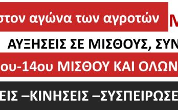 Καλούμε σε πανεργατική και αγροτική διαδήλωση στην Αθήνα- Θεσσαλονίκη και σε όλες τις πόλεις, με κρίσιμο επίδικο ο αγώνας αυτός να συνεχιστεί και να κλιμακωθεί μέχρι την δικαίωσή του, με σύνδεση δημόσιου και ιδιωτικού τομέα, αγροτών, εργαζόμενων και νεολαίας σε κάθε γωνιά της χώρας μέχρι την νίκη!