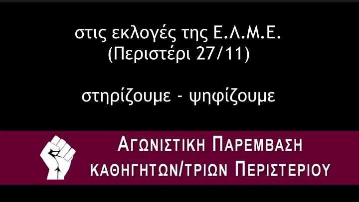 Εκλογική προκήρυξη Αγωνιστικής Παρέμβασης καθηγητών Περιστερίου – «Την Πέμπτη 27/11 ψηφίζουμε Αγωνιστική Παρέμβαση»
