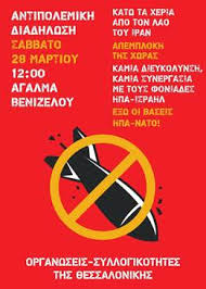 ΑΝΤΙΠΟΛΕΜΙΚΗ ΔΙΑΔΗΛΩΣΗ ΣΑΒΒΑΤΟ 28/3, ΣΤΙΣ 12Μ ΑΓΑΛΜΑ ΒΕΝΙΖΕΛΟΥ