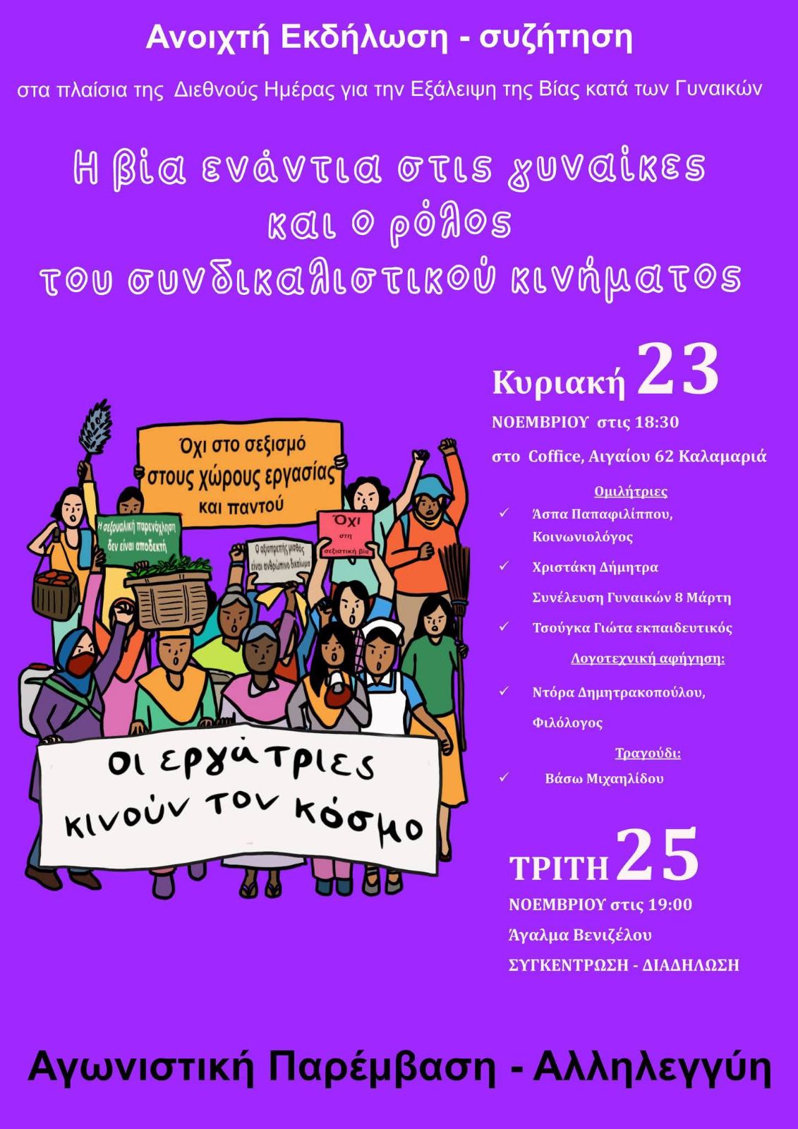 Aνοιχτή εκδήλωση με θέμα: «Η βία ενάντια στις γυναίκες και ο ρόλος του συνδικαλιστικού κινήματος» για να συζητήσουμε και να ανταλλάξουμε ιδέες για τις αιτίες της βίας ενάντια στις γυναίκες, και για το πως θα μπορούσαν τα συνδικάτα να βοηθήσουν στην αντιμετώπιση της.