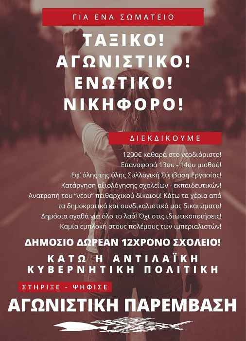 Πρωτιά της Αγωνιστικής Παρέμβασης καθηγητών/τριών Περιστερίου στις εκλογές