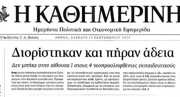 Πρωτοσέλιδο "χτύπημα" των εκπαιδευτικών
