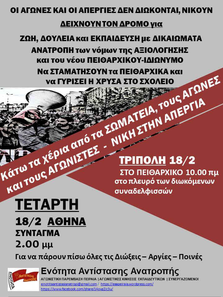 Για την νέα κλήση σε απολογία απεργών εκπ/κών παράσταση...