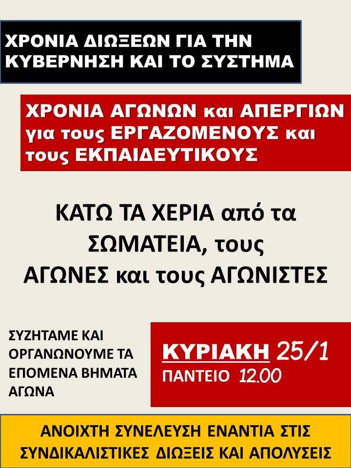 Κάλεσμα στην πανεκπαιδευτική συγκέντρωση στη...