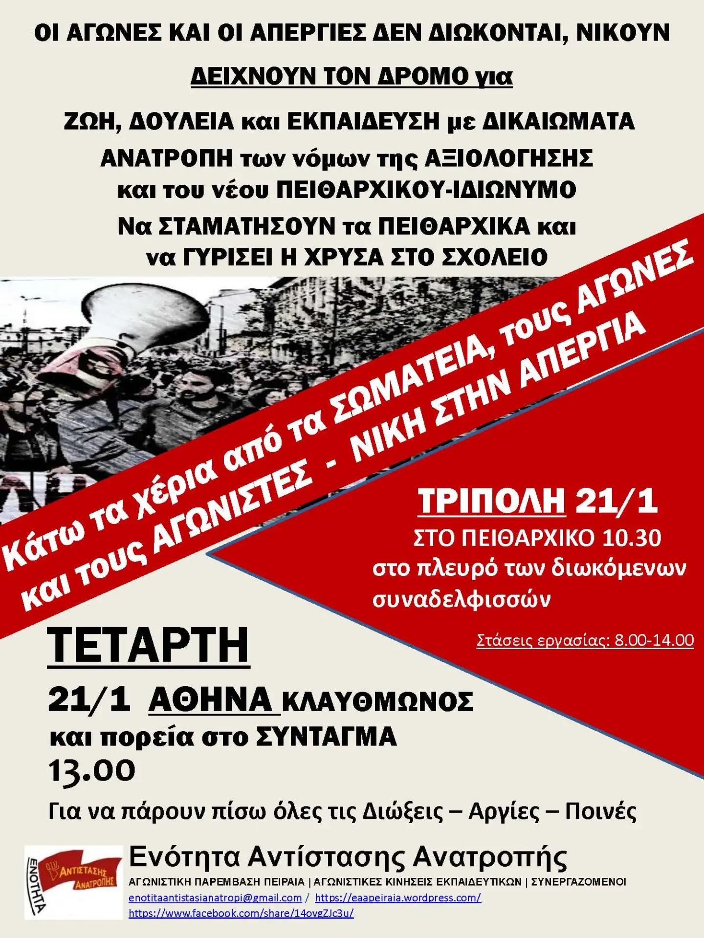 Όλοι στην Τρίπολη την Τετάρτη 21 Γενάρη στις 10.30πμ και στις...