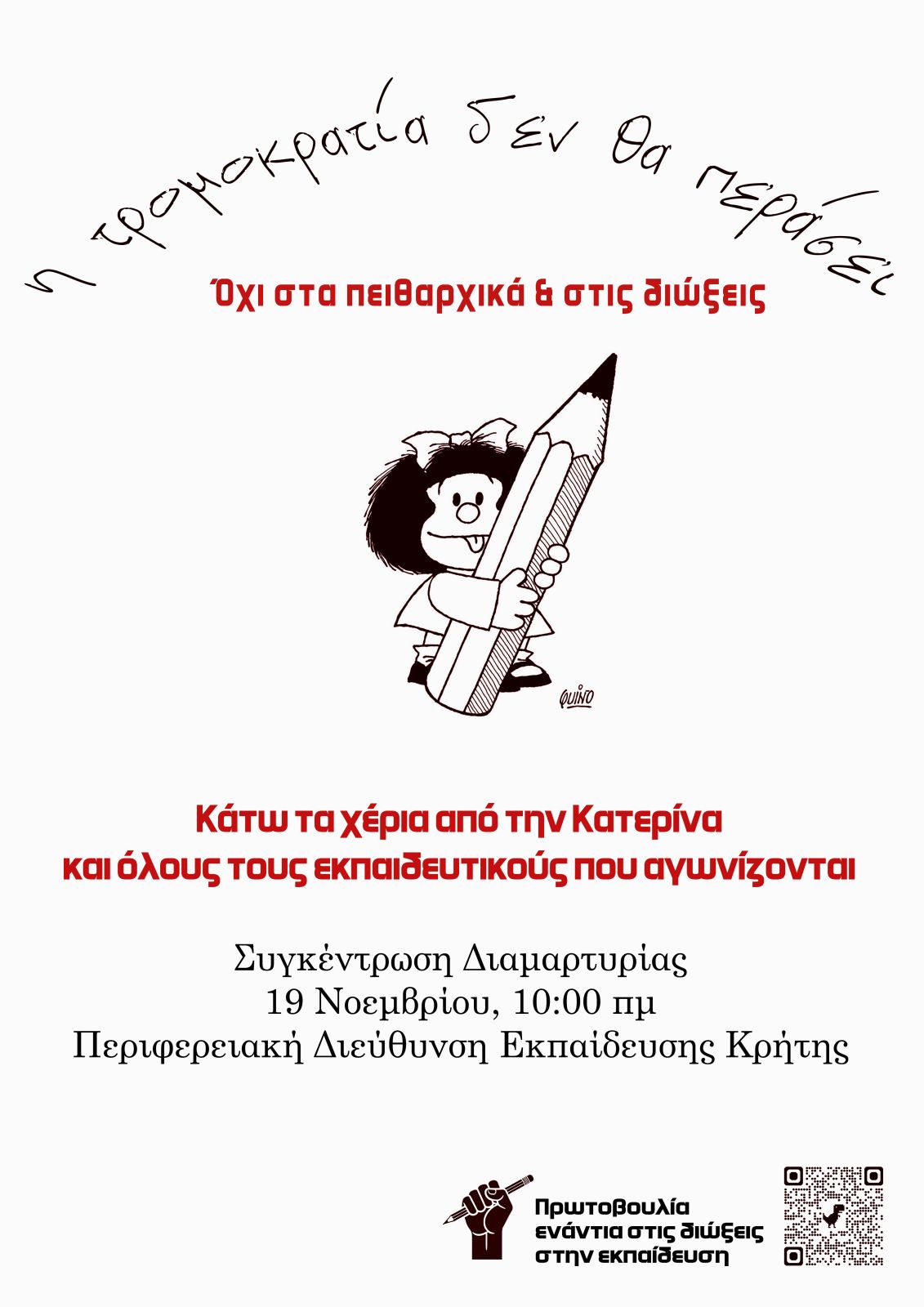 Εκπαιδευτικοί Κρήτης: Στάσεις εργασίας και συγκέντρωση αλληλεγγύης στην Κατερίνα Πανδή – Τετάρτη...