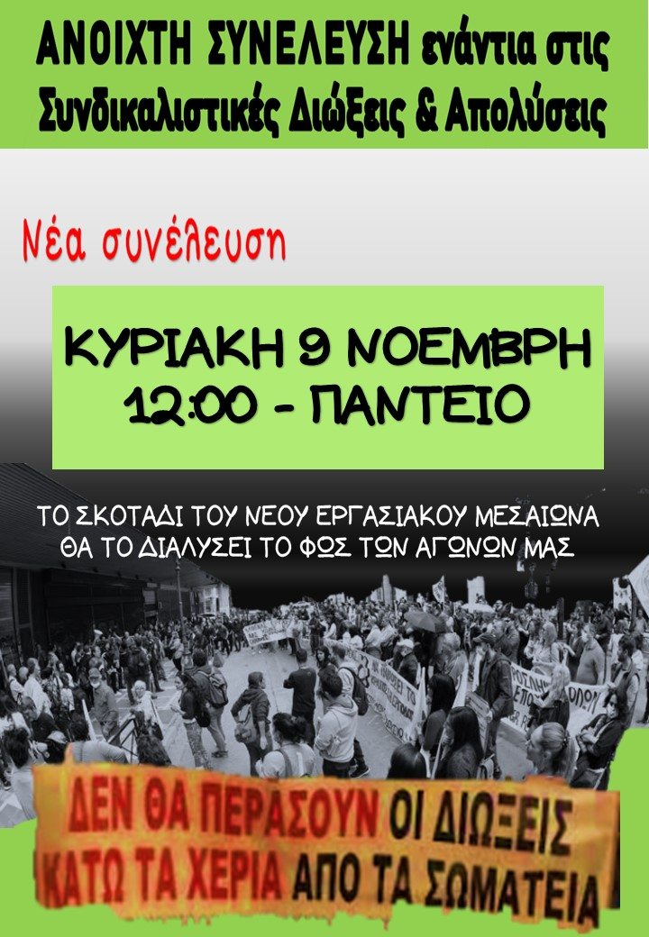 Νέα απόπειρα ποινικοποίησης της συνδικαλιστικής δράσης και της ΕΑΑ-Πρόταση στο ΔΣ