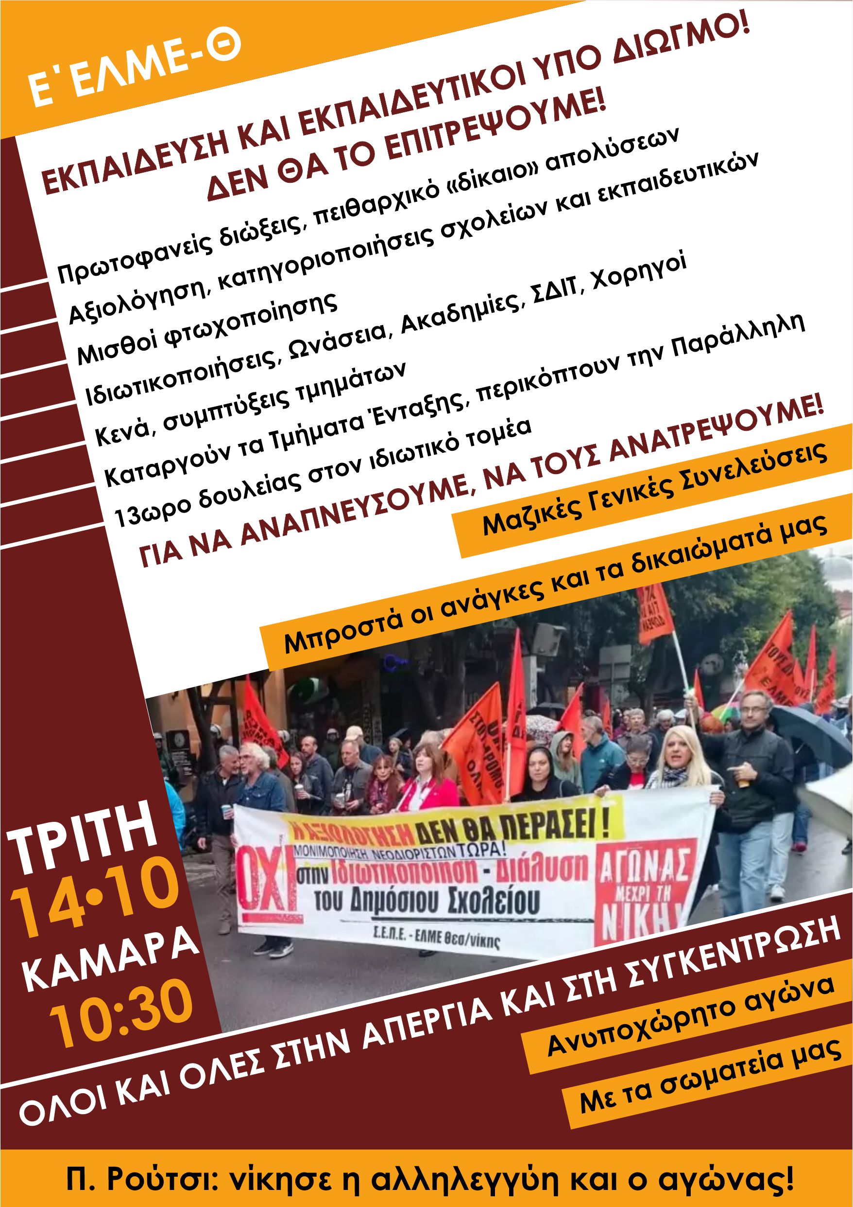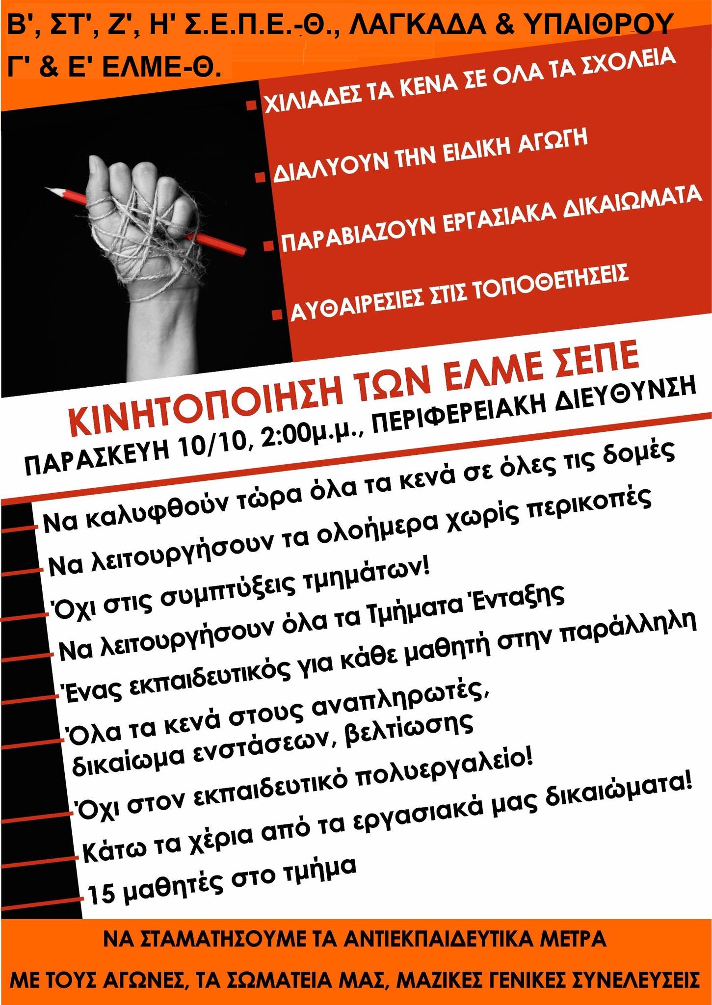 ΚΙΝΗΤΟΠΟΙΗΣΗ των ΣΕΠΕ-ΕΛΜΕ Θεσσαλονίκης ΠΑΡΑΣΚΕΥΗ 10/10, 2μμ, στην ΠΔΕ Κεντρ. Μακεδονίας...