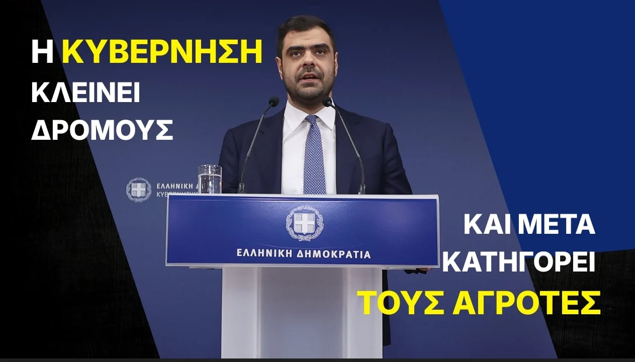 «Λέτε ότι οι αγρότες ταλαιπωρούν την κοινωνία, όμως σε εκατοντάδες βίντεο βλέπουμε ότι η αστυνομία μπλοκάρει τον δρόμο, ενώ οι αγρότες ανοίγουν τον δρόμο για να περάσουν οι ταξιδιώτες και μάλιστα τους μοιράζουν και αγροτικά προϊόντα. Θα βγάλετε τις κλούβες από τον δρόμο μας να πάμε να κάνουμε γιορτές χωρίς ταλαιπωρία;»
