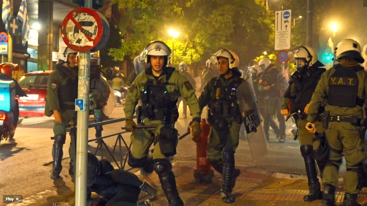 Το ίδιο βράδυ, αστυνομικές δυνάμεις κινήθηκαν επίσης κοντά στο σημείο της δολοφονίας του Αλέξη Γρηγορόπουλου στα Εξάρχεια, όπου έδρασαν με το χαρακτηριστικό τρόπο επαγγελματιών χούλιγκαν, ξυλοκοπώντας κόσμο σε μαγαζιά της περιοχής και προκαλώντας καταστροφές σε αυτά. Εκεί καταγράφηκαν εκ νέου σε βίντεο τα ανδραγαθήματά τους, τα οποία περιελάμβαναν την επίθεση σε ένα άτομο με τεχνητό πόδι, που βρισκόταν σε ένα από τα μαγαζιά ακυρώνοντας οποιονδήποτε ισχυρισμό της αστυνομίας για «άμυνα».