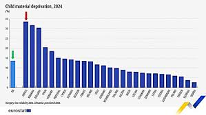 Η ΕΞΕΥΤΕΛΙΣΤΙΚΗ διαπίστωση είναι τριπλή: α) το μέσο ποσοστό για ολόκληρη την ΕΕ είναι 13,6% του συνολικού παιδικού πληθυσμού, ενώ στην χώρα μας τριπλάσιο, β) η Ελλάδα είναι η χειρότερη χώρα σε διαβίωση των παιδιών της, σε ολόκληρη την ΕΕ και 3) Στην Ρουμανία και στην Βουλγαρία, χώρες οι οποίες εισήλθαν στην ΕΕ 26 χρόνια (το 2007) αργότερα από την χώρα μας (1981), τα παιδιά διαβιούν σχετικά καλύτερα.