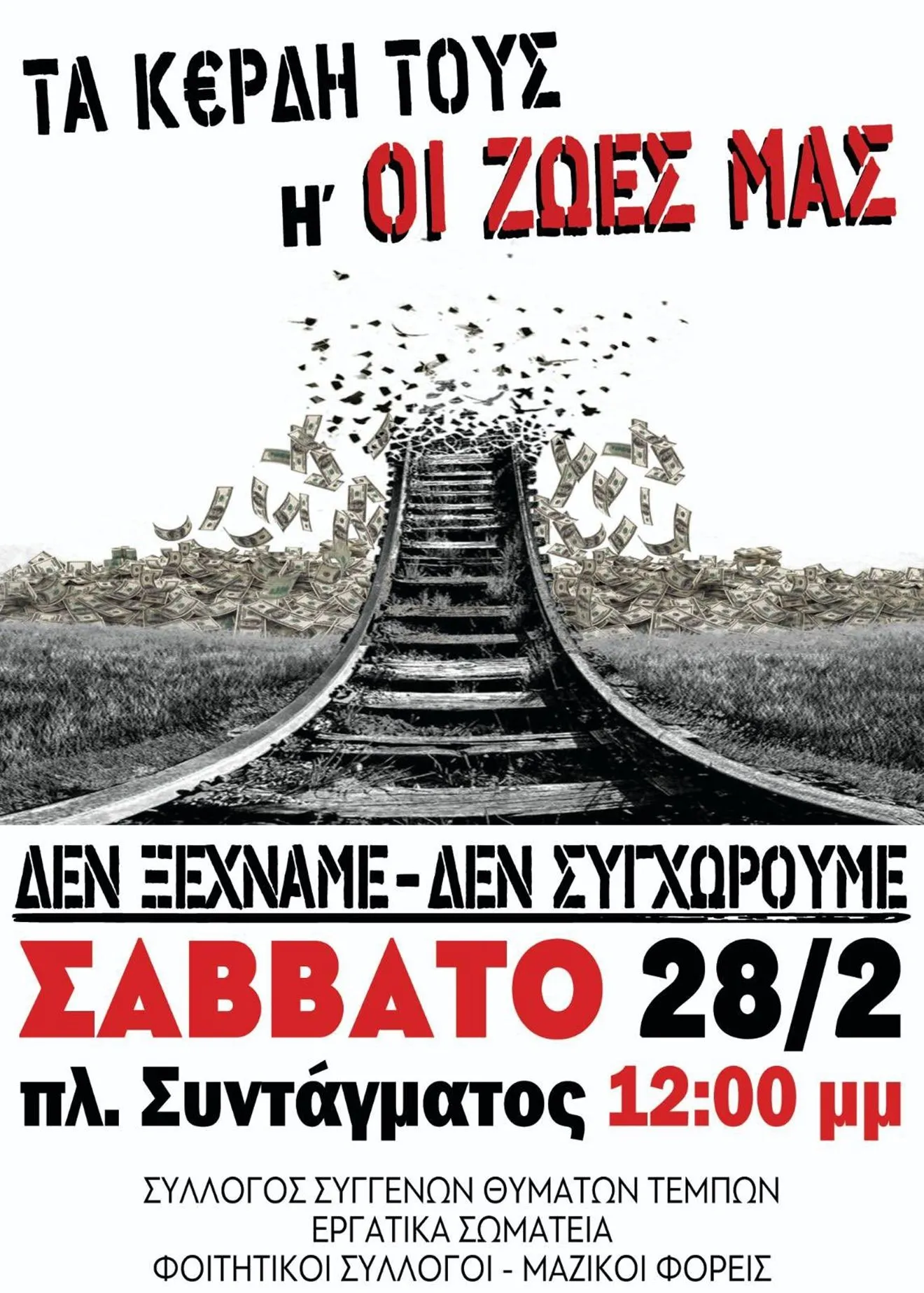 Οι συγκεντρώσεις σε όλη τη χώρα σήμερα Σάββατο 28/2 - "ΔΕΝ ΞΕΧΝΑΜΕ - ΔΕ ΣΥΓΧΩΡΟΥΜΕ!"
