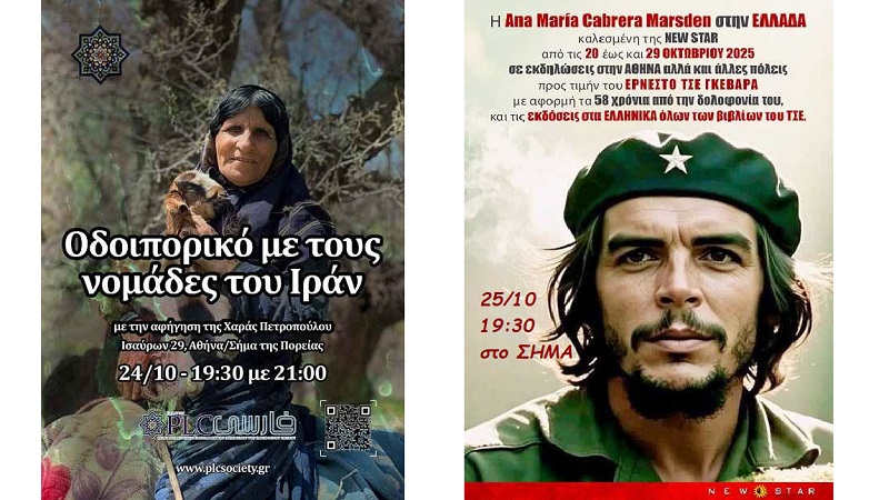ΣΗΜΑ: Παρασκευή 24/10, «Ταξιδεύοντας με τη νομαδική φυλή των Bakhtiari του Ιράν» / Σάββατο 25/10, Η Ana María Cabrera Marsden, για τον Τσε
