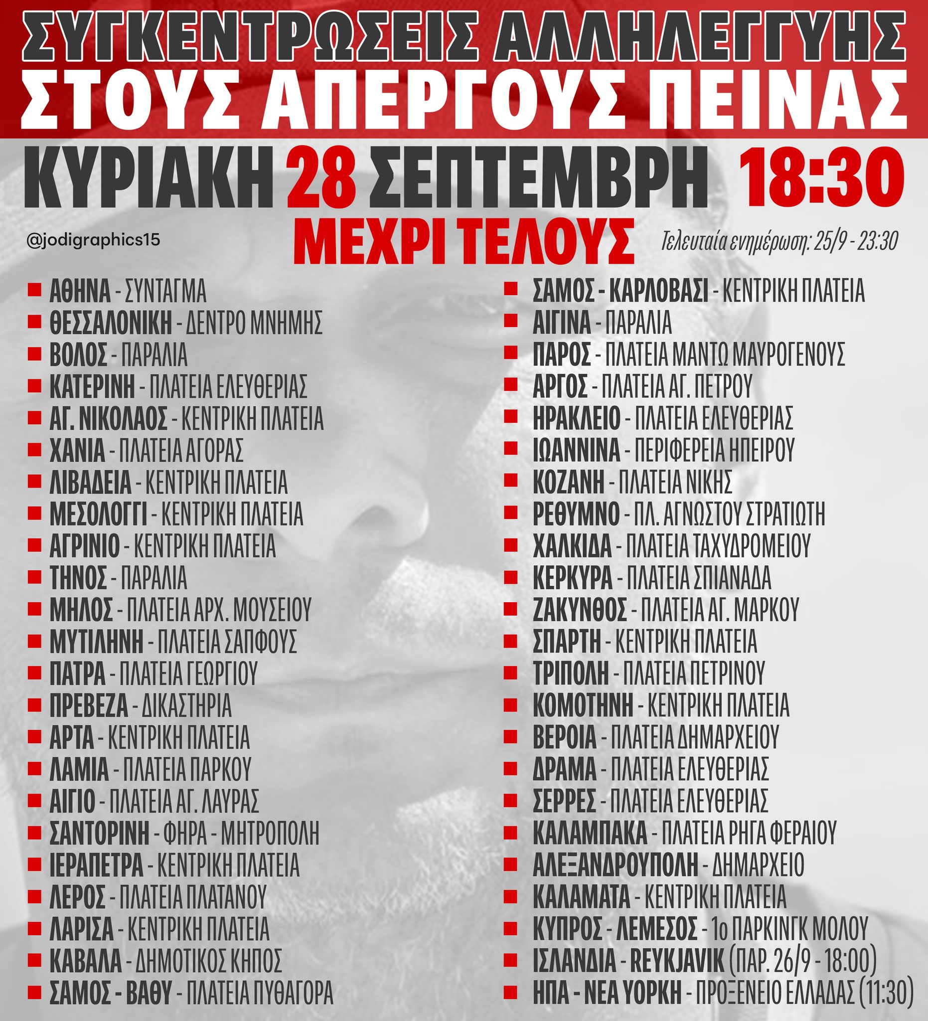 Συγκεντρώσεις αλληλεγγύης στους απεργούς πείνας την Κυριακή 28/9, 18:30