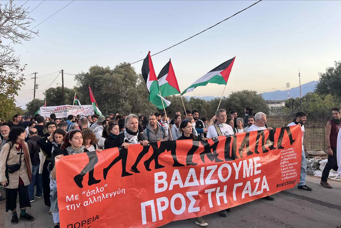«Συγκλονιστικές εικόνες και δυνατά πολιτικά μηνύματα στο αντιπολεμικό διήμερο», τονίζει το March to Gaza Greece, κάνοντας τον απολογισμό του αντιπολεμικού διήμερου που πραγματοποιήθηκε στα Χανιά.