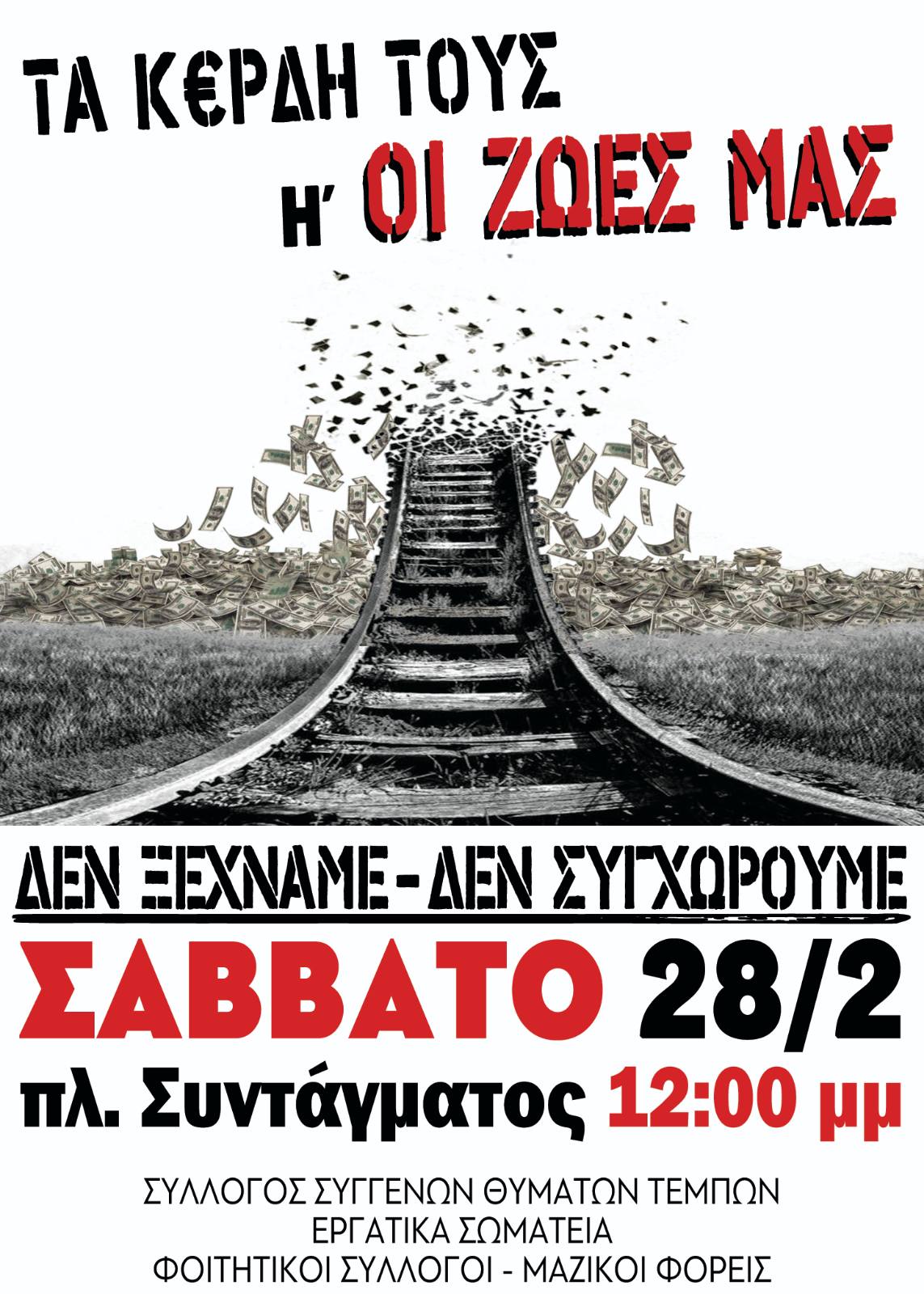 Αναλυτικά οι συγκεντρώσεις διαμαρτυρίας για τα 3 χρόνια από το έγκλημα των Τεμπών που θα...